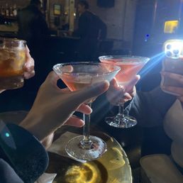 awesome bar!!! me and my friends went in and ordered some cosmos and sat and drank and listened to heavy metal/hard rock. the drinks were so good and the bartender was so sweet! i love the restrooms they have a castle vibe to them. the booths are intimate and close, the lighting was perfect, not overstimulating. attracts the right people for sure. i love that the doors are closed and you cant see in. the martini glass neon sign outside is soooo cute!!! will be coming back for sure